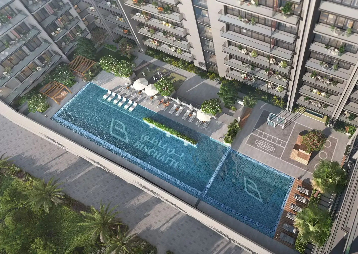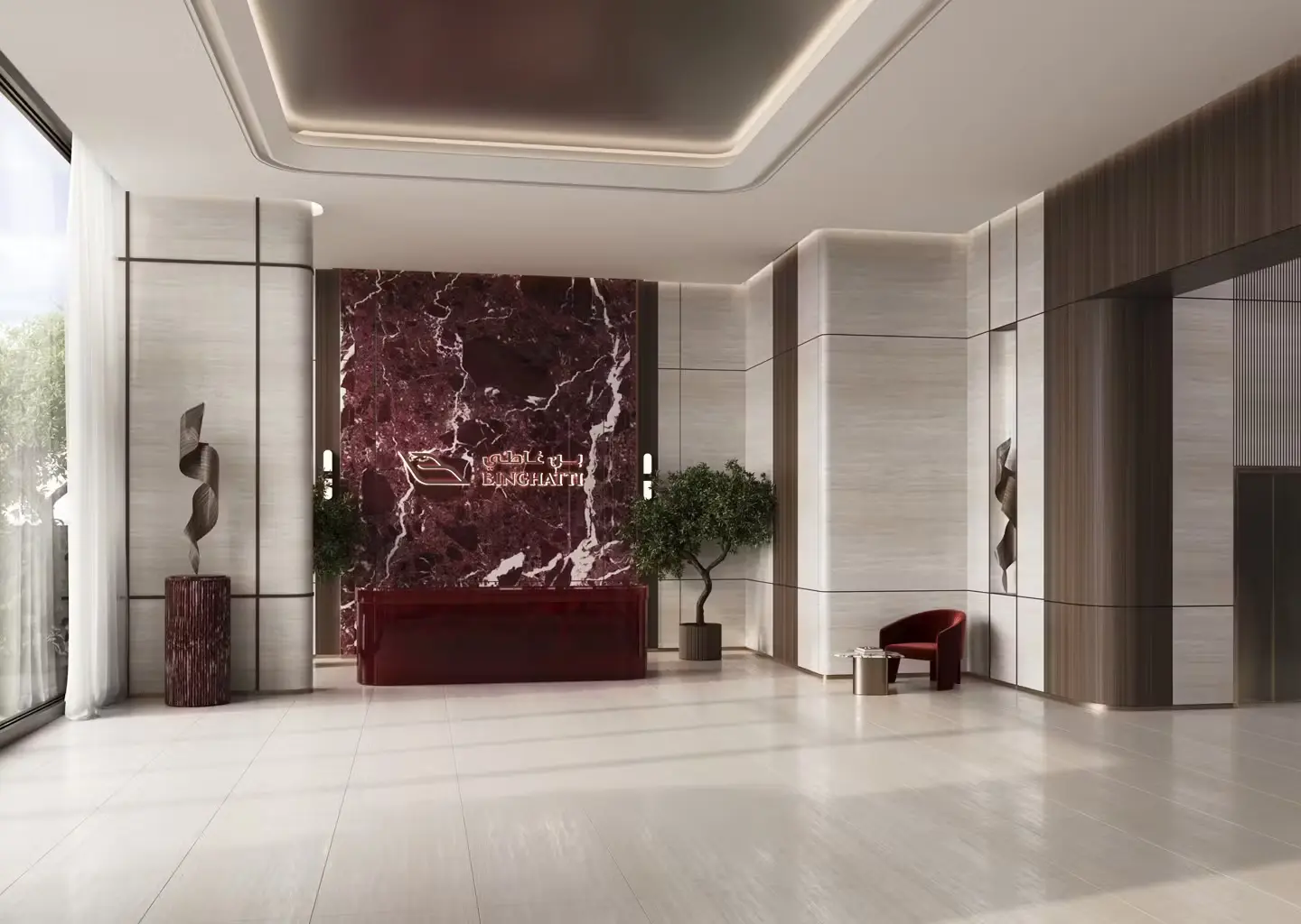 Binghatti Ruby at JVC is the latest residential addition, developed by the Binghatti Developers, featuring luxury studios, 1, 2 and 3-bedroom apartments laced with modern facilities. The elegant high-rise façade is lined with basement, ground, four leisure podium levels and two office floors as well as 18 residential luxuries along with the rooftop leisure, inspired by the opulent ruby gemstone that showcases elegance and innovation in the heart of Dubai. The building’s architecture stands out, with its avant-garde design reflecting the signature style. Each residence is crafted to offer an unparalleled living experience with high-quality finishes and modern interiors. With stunning views of the city skyline, the façade provides a luxurious urban lifestyle for residents seeking both comfort and sophistication.